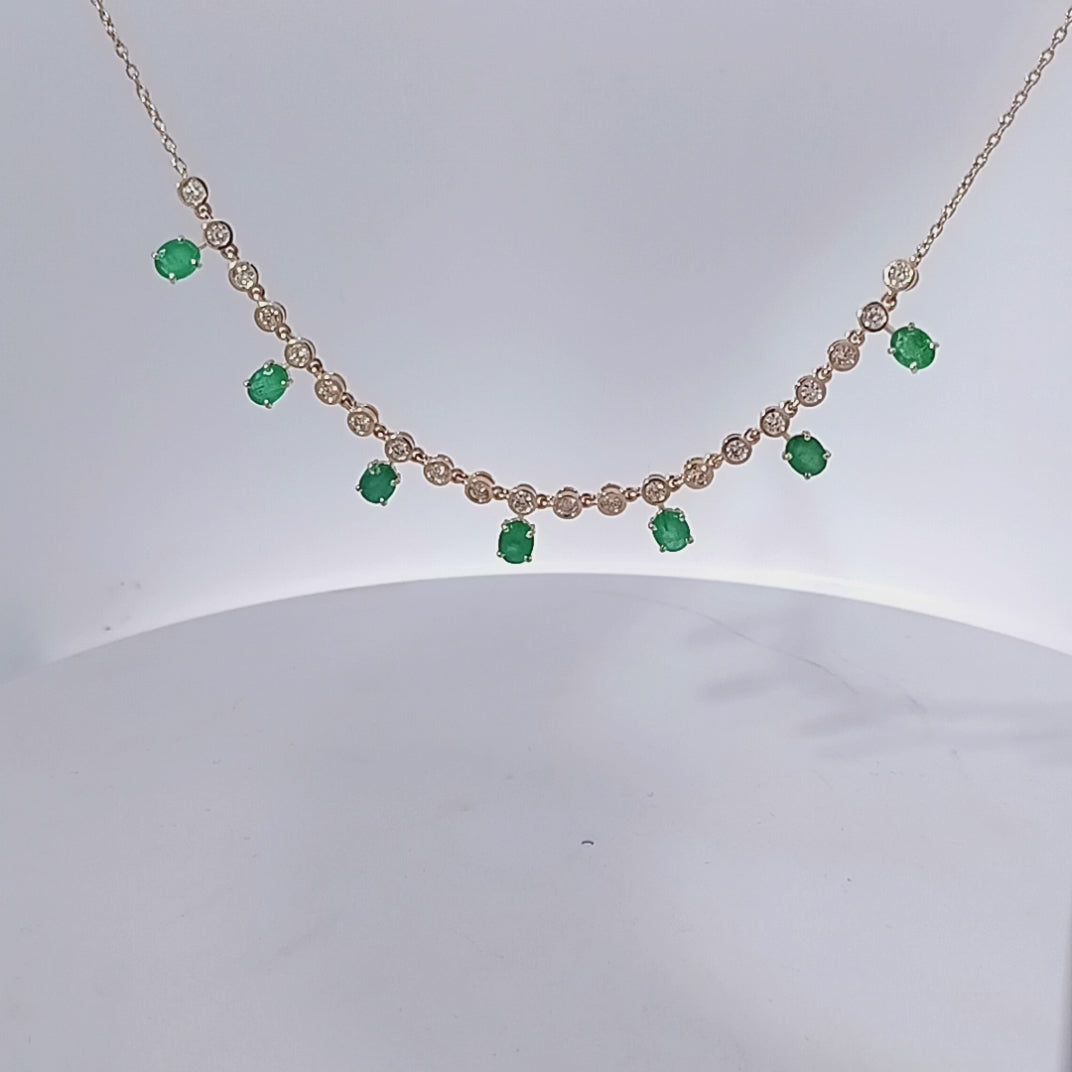 Emerald and Diamond Necklace in 14kt Gold Handmade