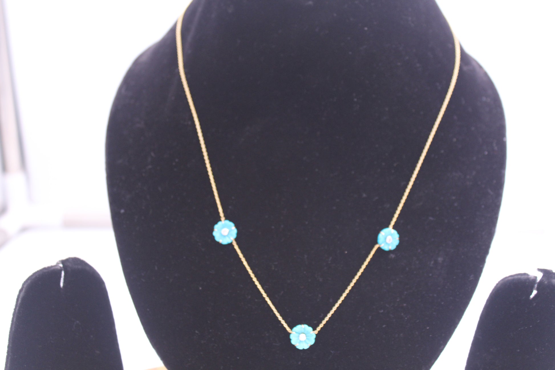 3 Diamond Flower Gold Chain in 14kt Gold