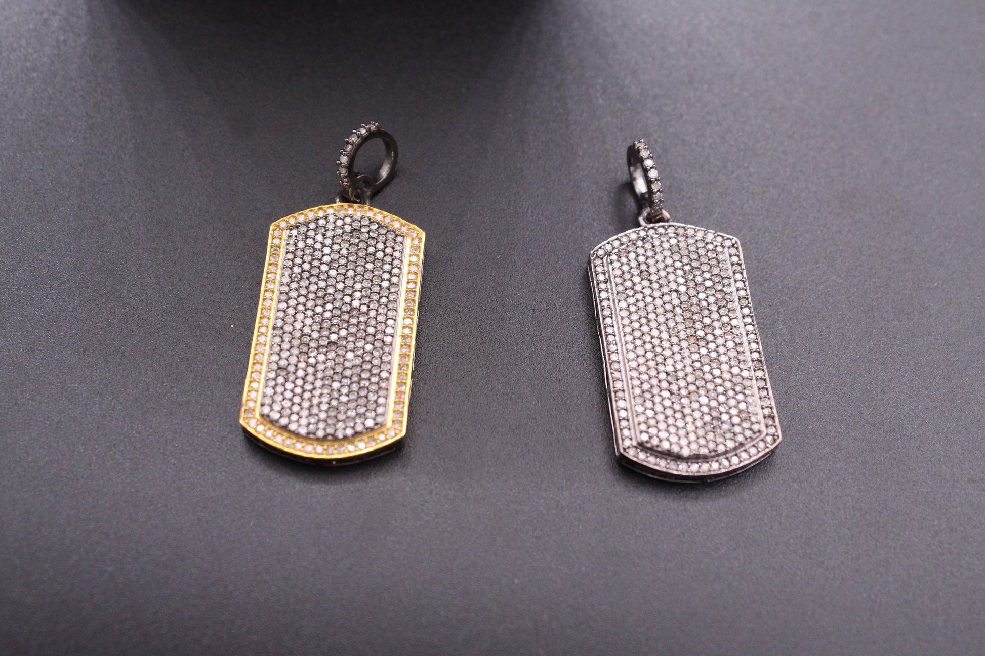 Dog Tag All Diamond Pendant in Two Tone set in Sterling Silver