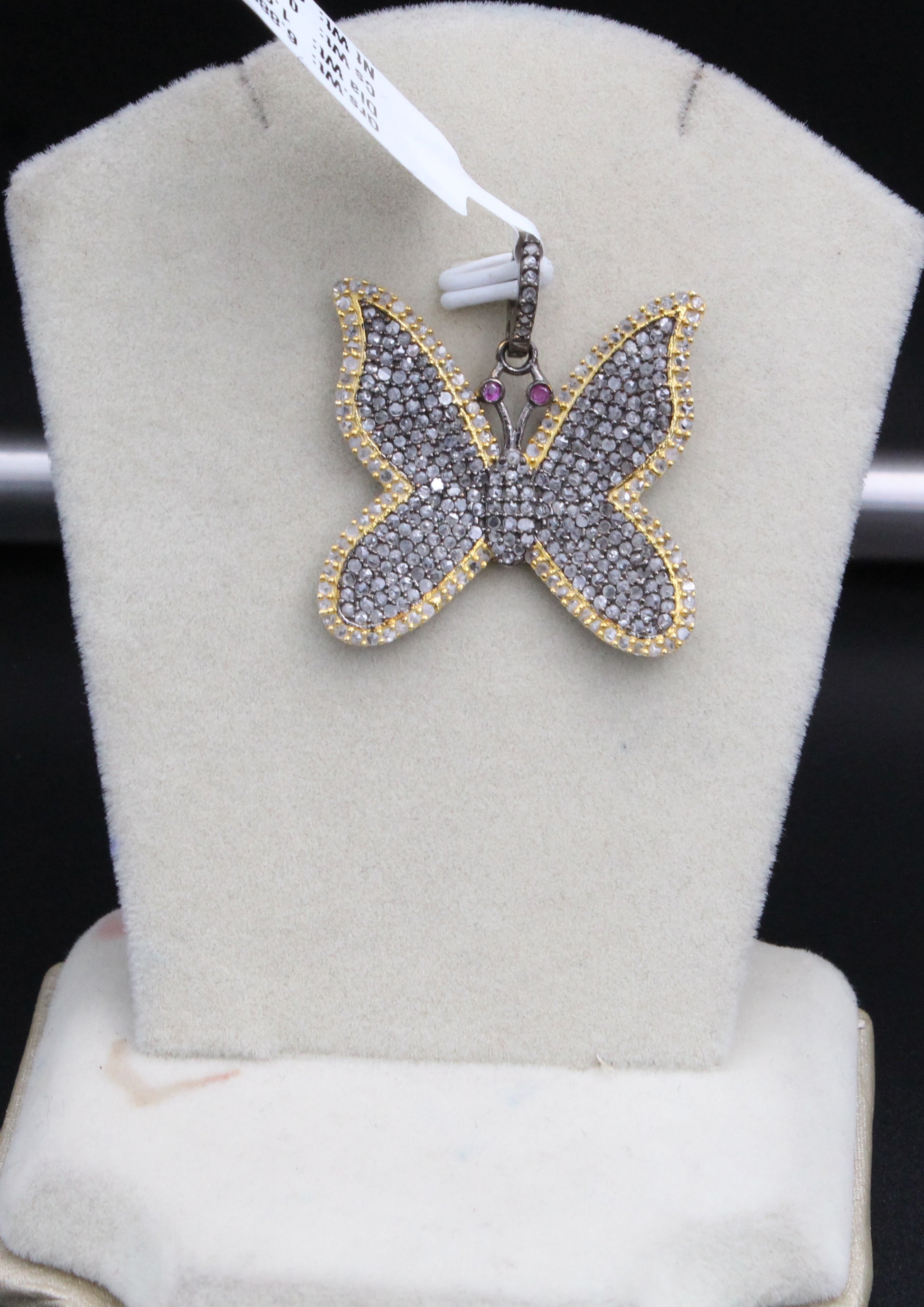 Butterfly Diamond Pendant Two Tone Rodium set in Sterling Sliver