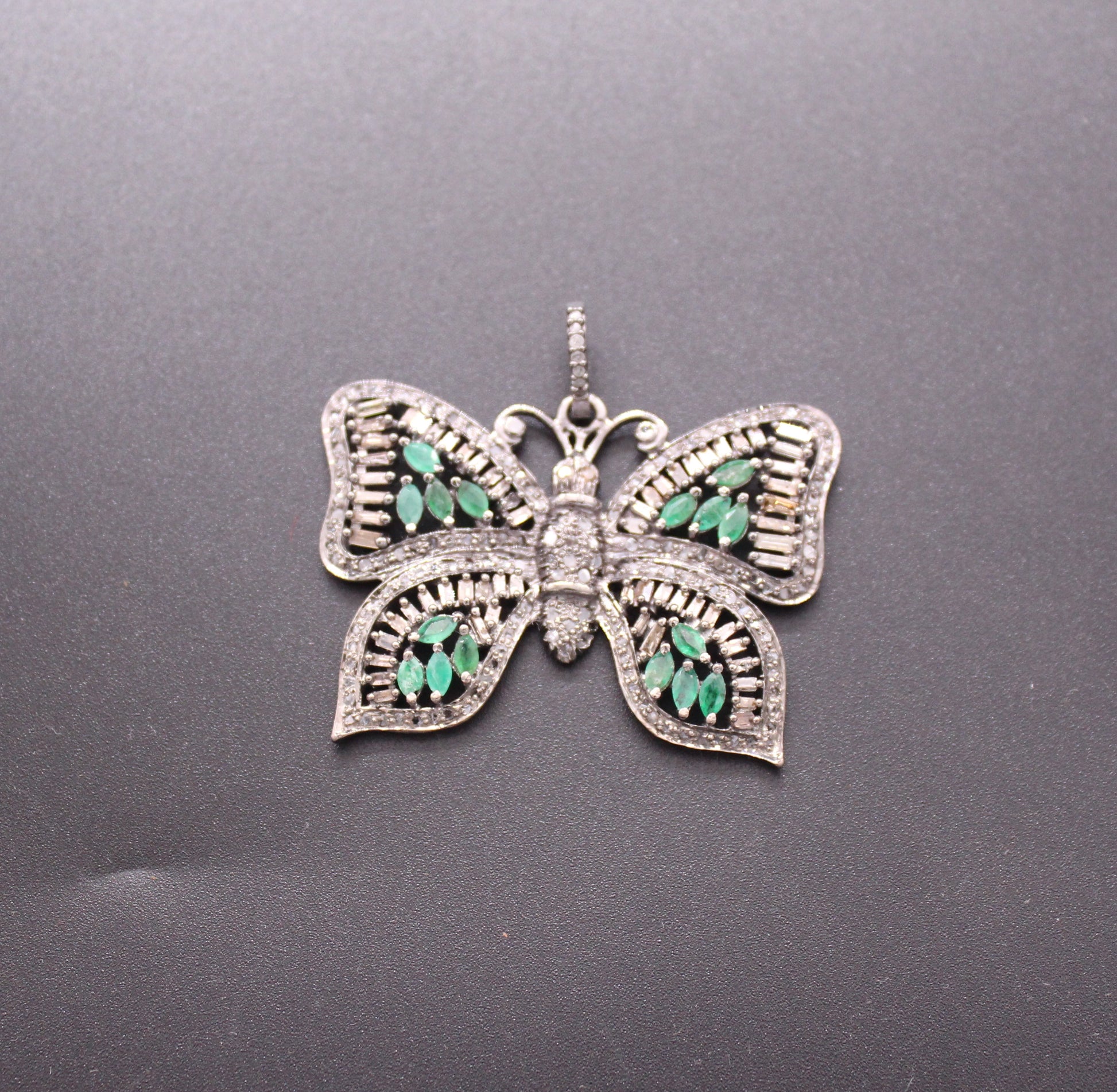 Butterfly Diamond and Gemstone Pendant in Antique look set in Sterling Silver
