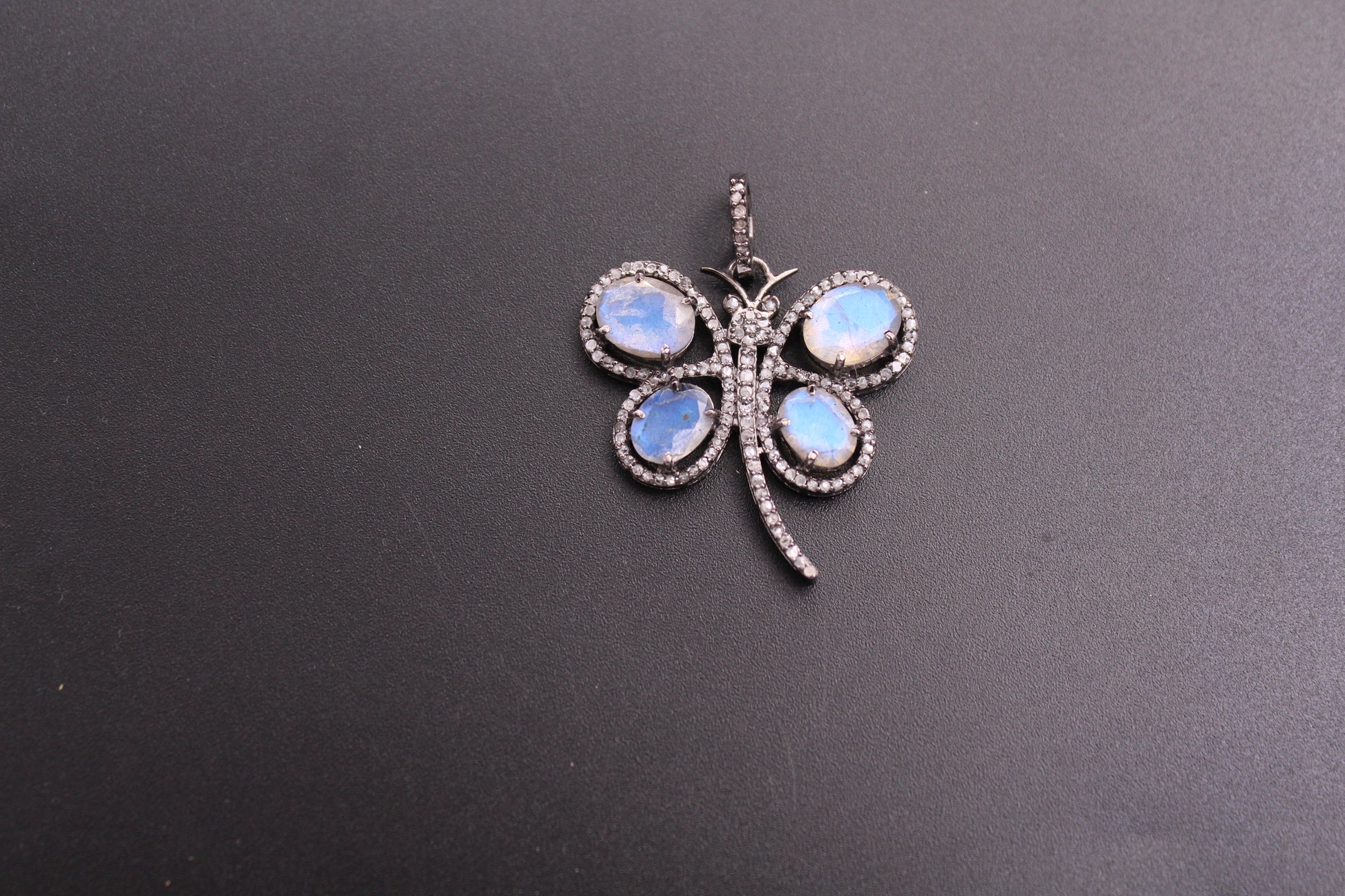 Butterfly Diamond with Gemstone Pendant in Antique look set in Sterling Silver