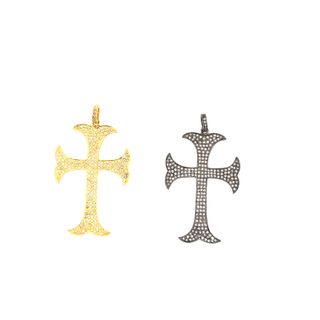 Cross All Diamond Pendant in Gold Rodium and Antique look set in Antique look set in Sterling Silver