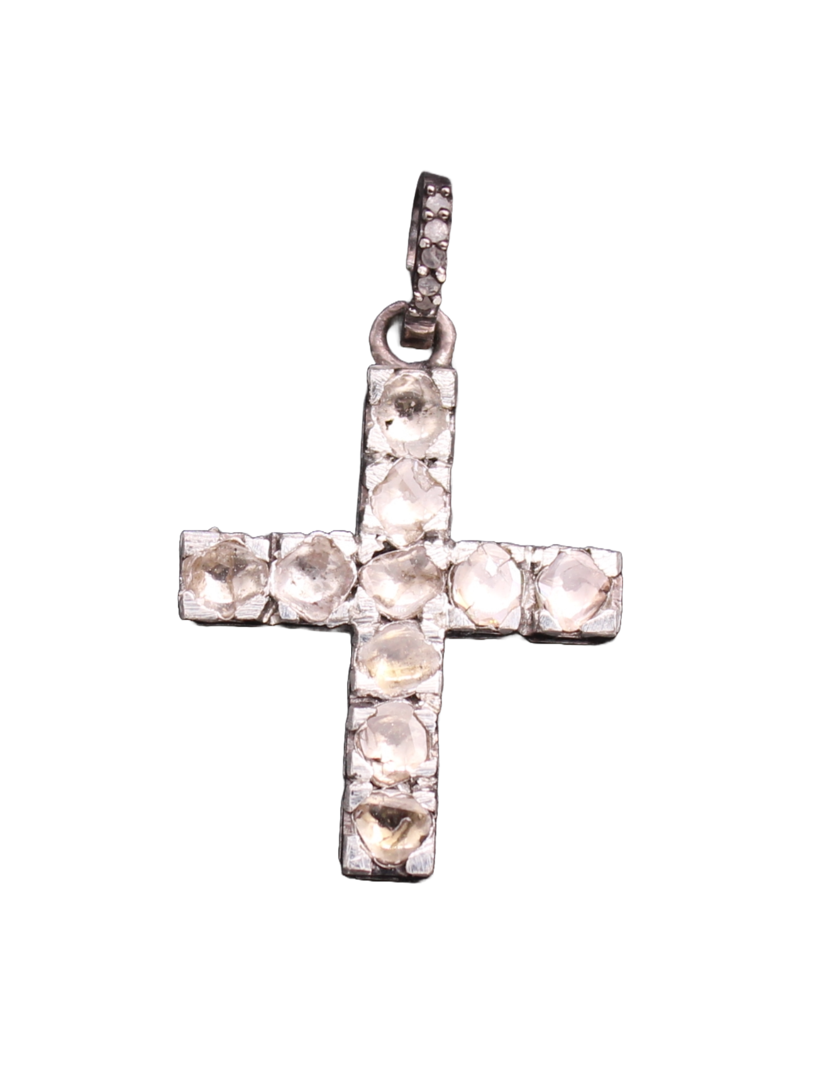 Cross Design Diamond and Polki Pendant in Antique look set in Sterling Silver