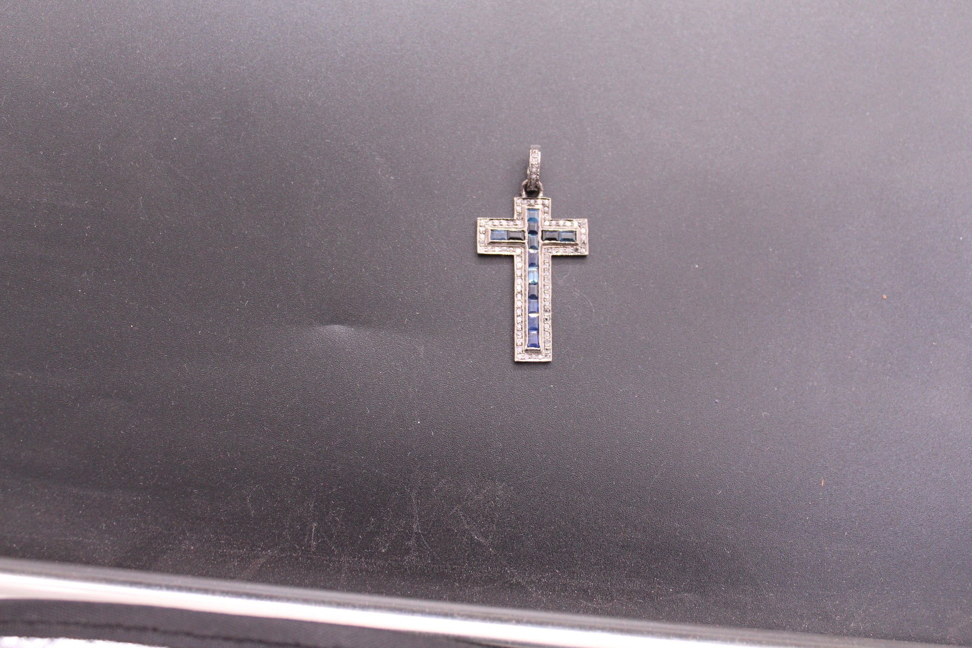 Cross Diamond & Blue Sapphire Pendent