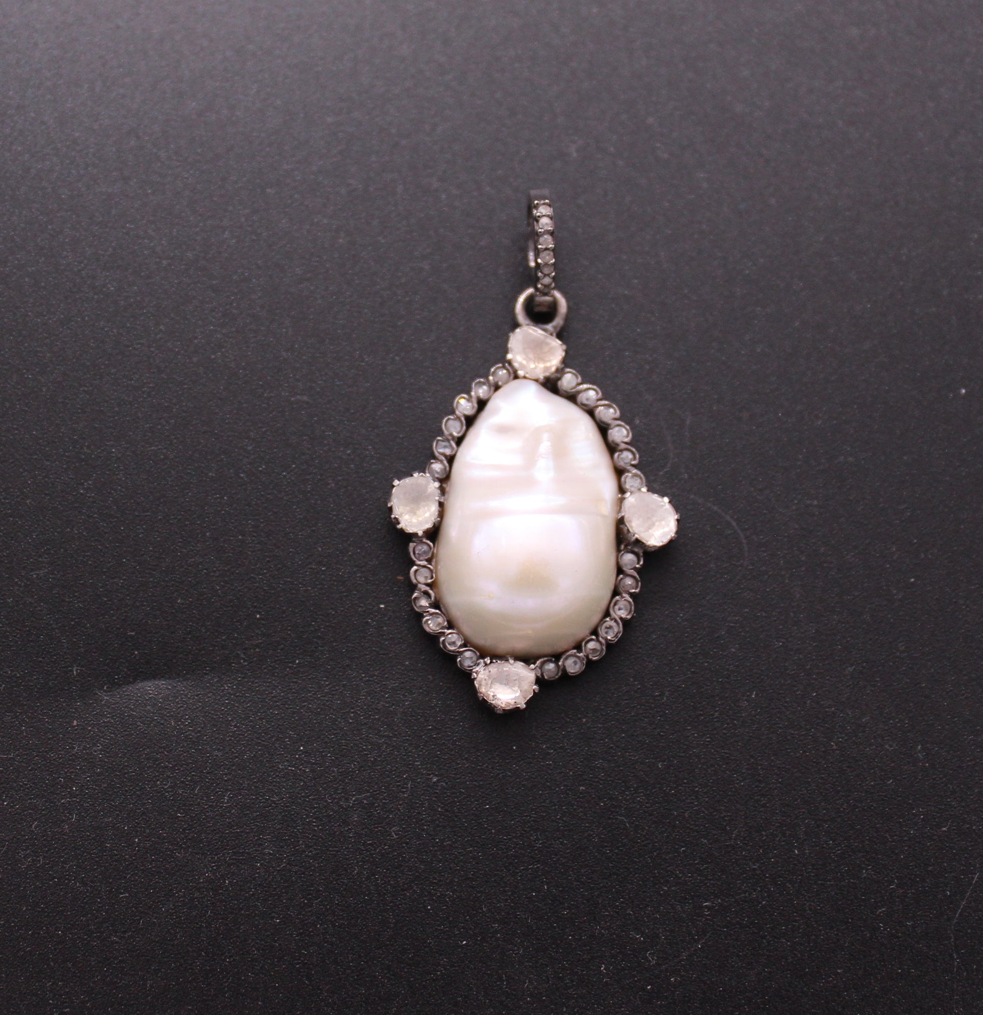 Diamond With Pearl and Gemstone Pendant in Antique look set in Sterling Silver