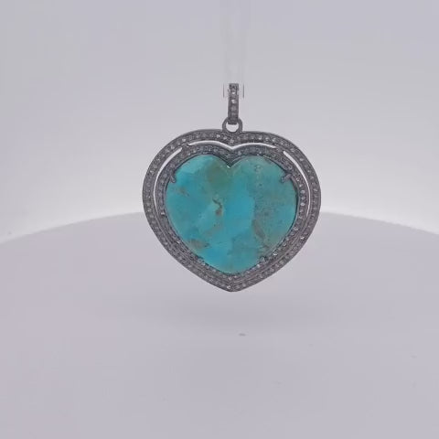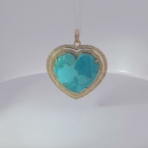 Double Layer Heart Diamond and Turquoise Pendant