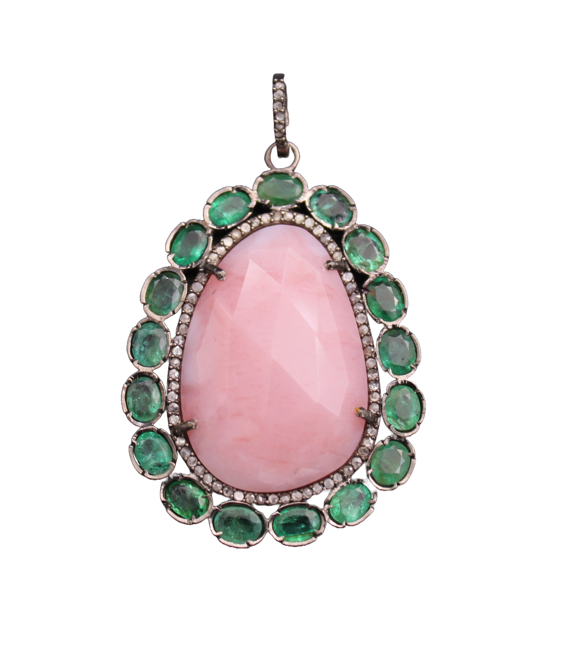 Gross weight - 12.030 Diamond weight - 0.49 Emerald weight - 5.55 Pink Opal weight - 24.100