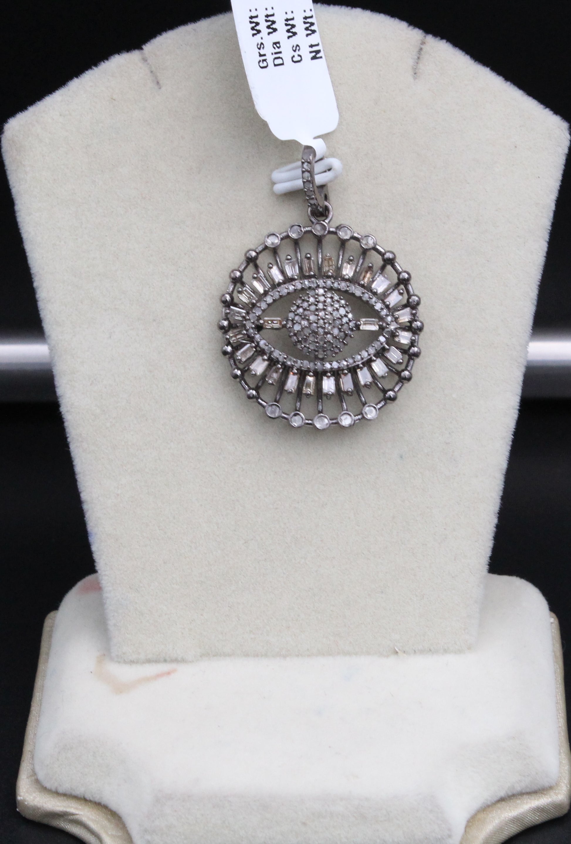 Evil Eye Diamond Pendant Antique look set in Sterling Silver Antique look set in Sterling Silver