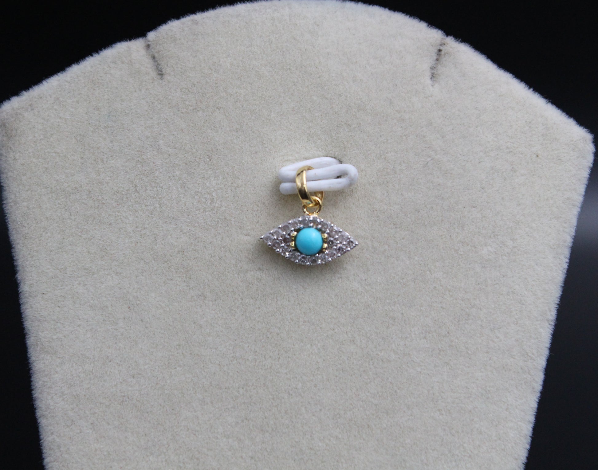 Evil Eye Design Pendant with Diamond and Turquoise in Gold Rodium look set in Sterling Silver