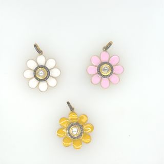 Flower Design Diamond and Meena Pendant