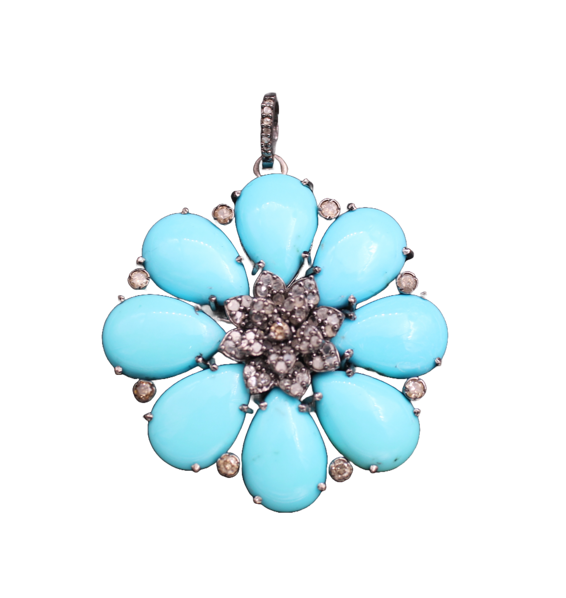 Flower Design Diamond and Turquoise Pendant