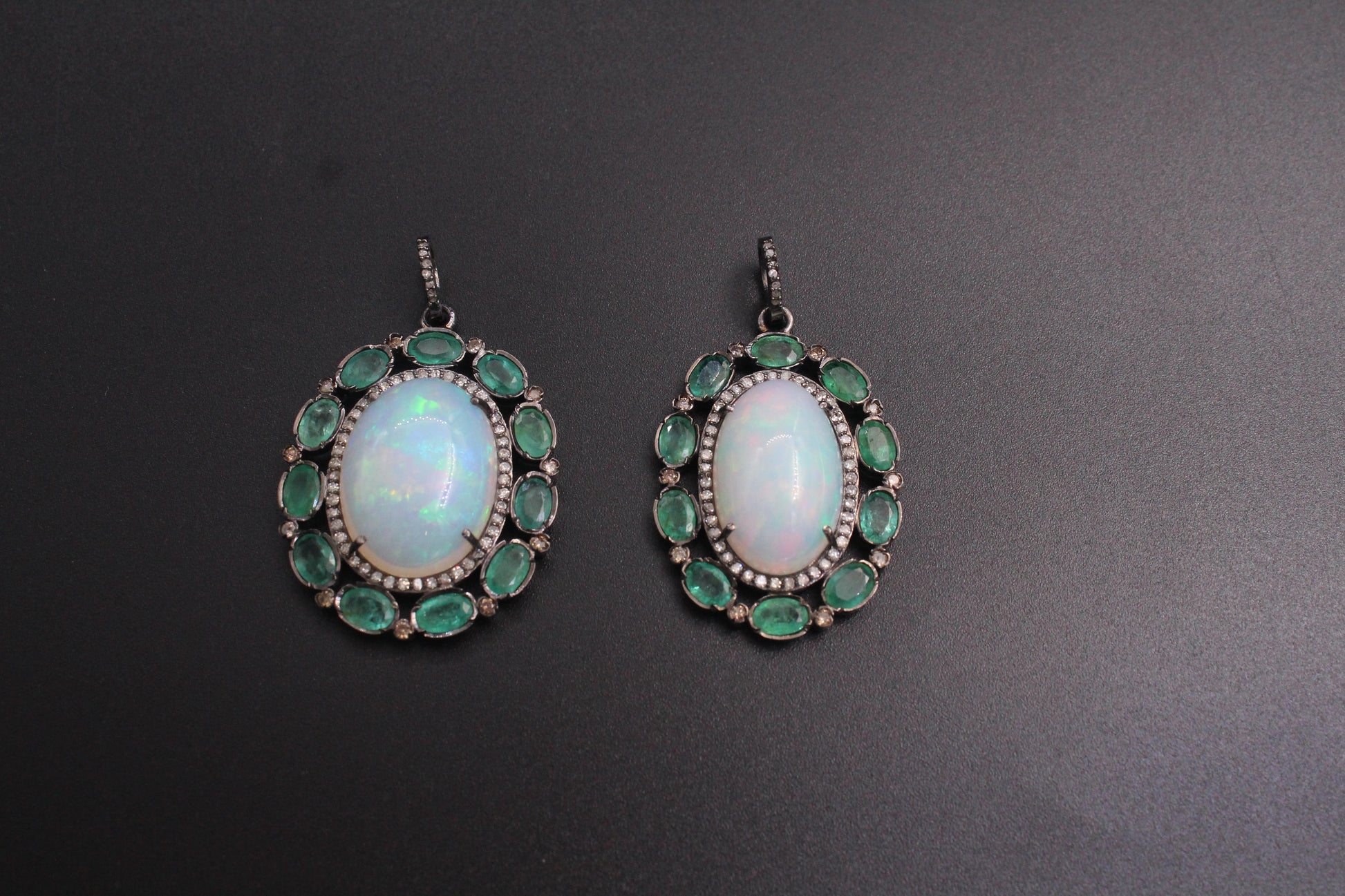 Gross weight - 9.29 Diamond weight - 0.72 Emerald - 5.25 Opal weight - 28.10 Size - 39mm x 29mm