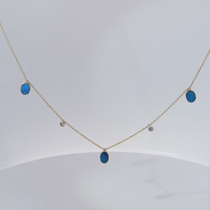 14 kt Gold,Diamond and Oval-Cut Opal Necklace