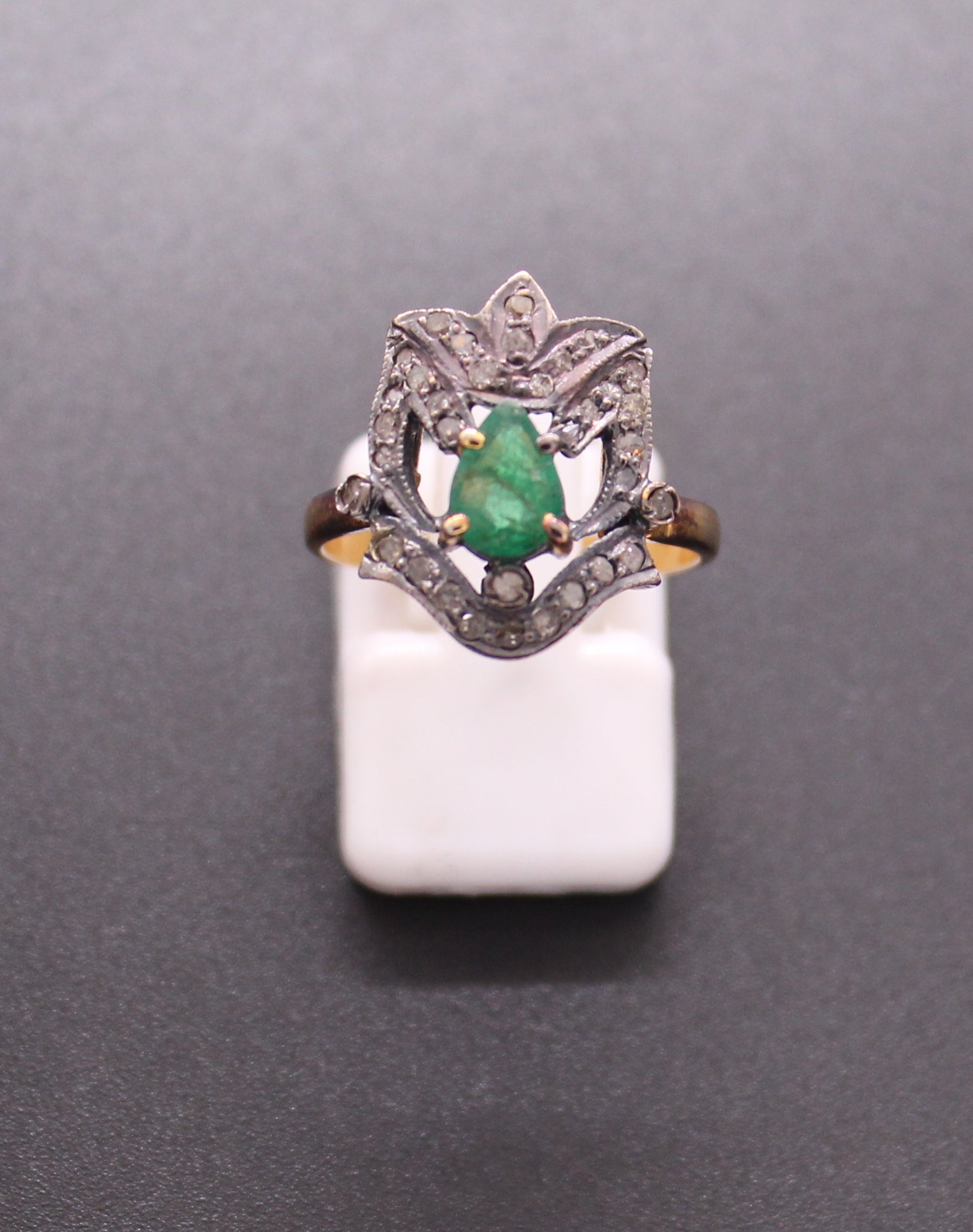 Gold & Silver Diamond and Emerald Ring in Antique look set in Sterling Silver