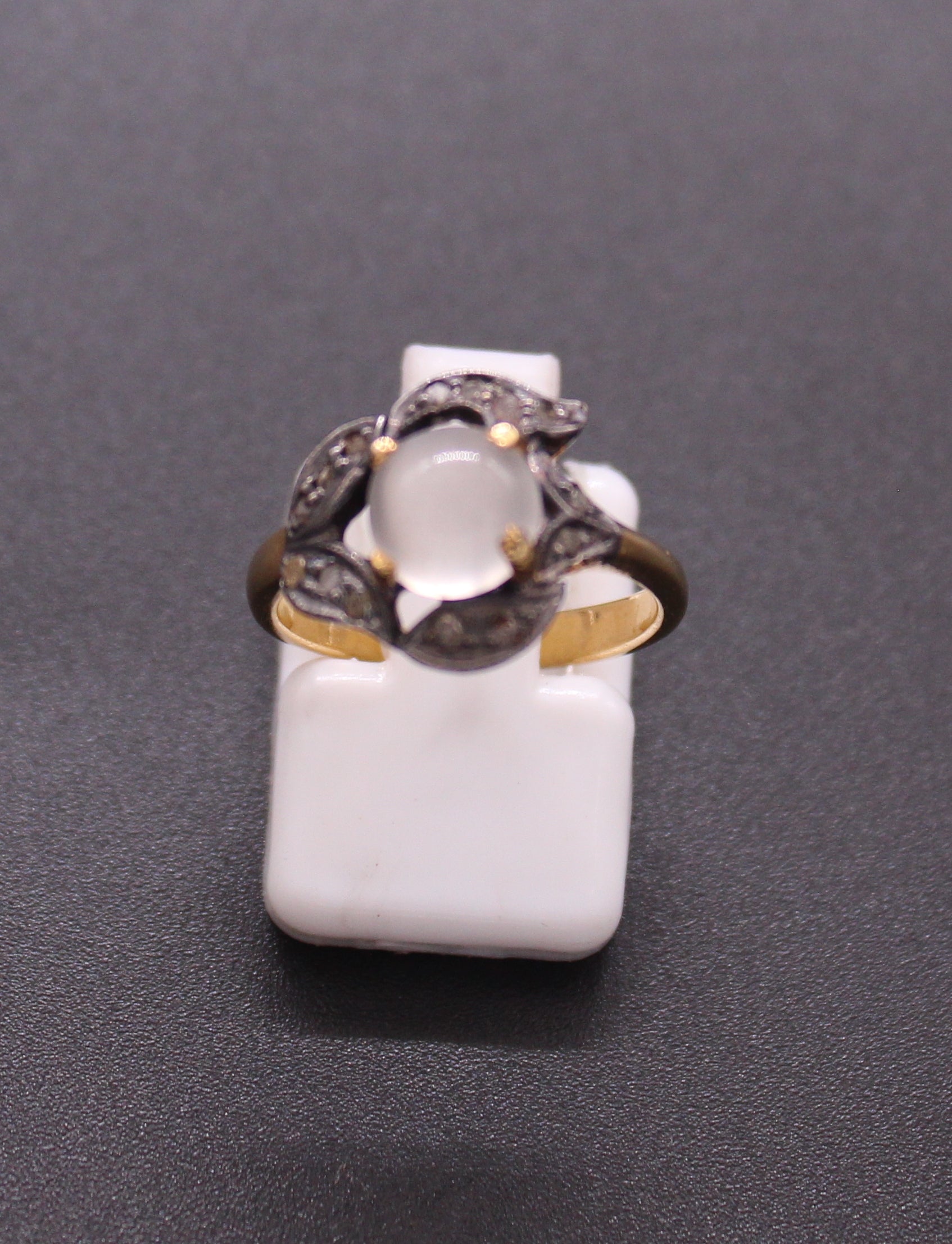Gold & Silver Diamond and Moon Stone Ring in Antique look set in Sterling Silver