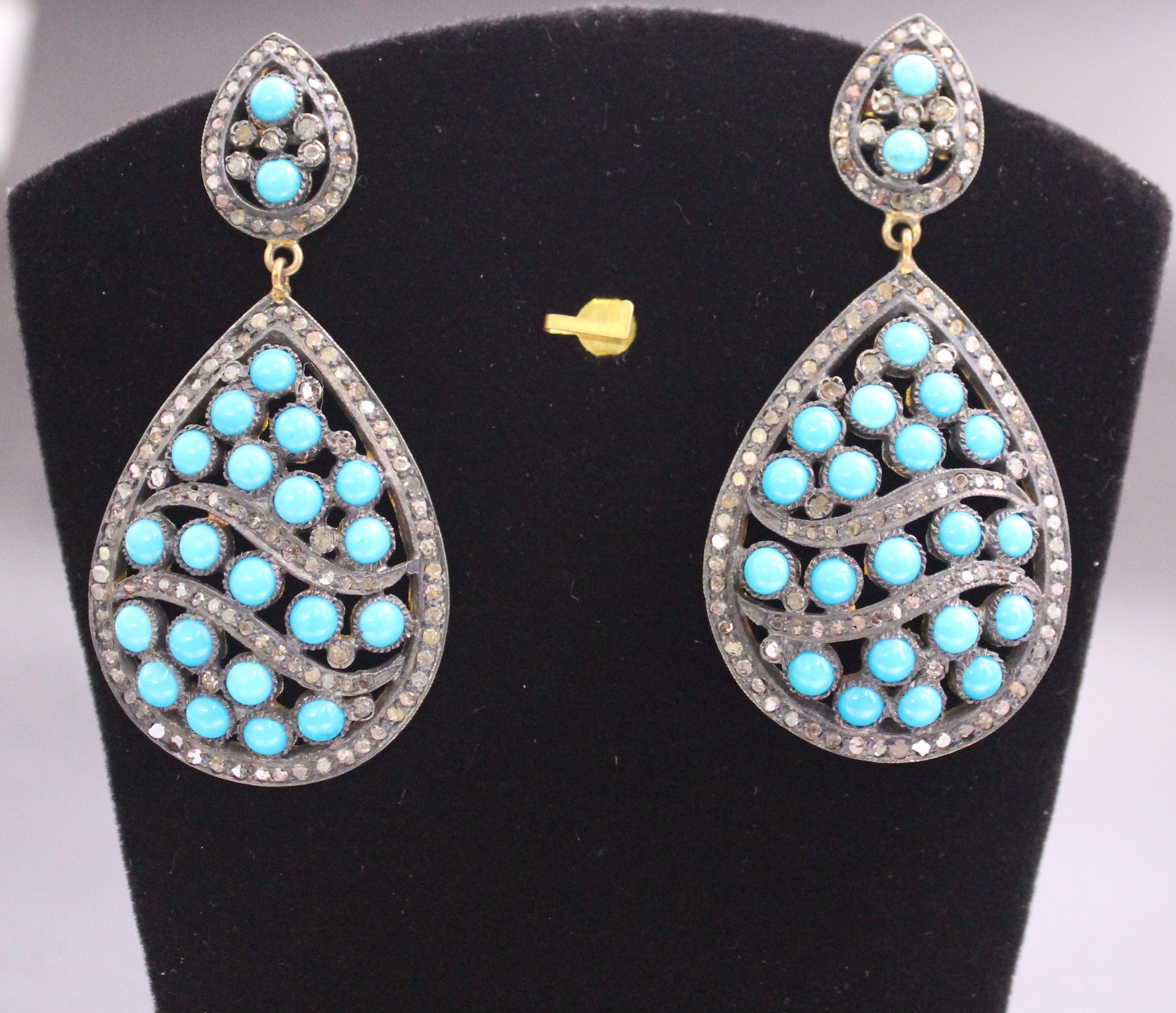 Gold & Silver Diamond and Turquoise Earring in Antique look set in Sterling Silver