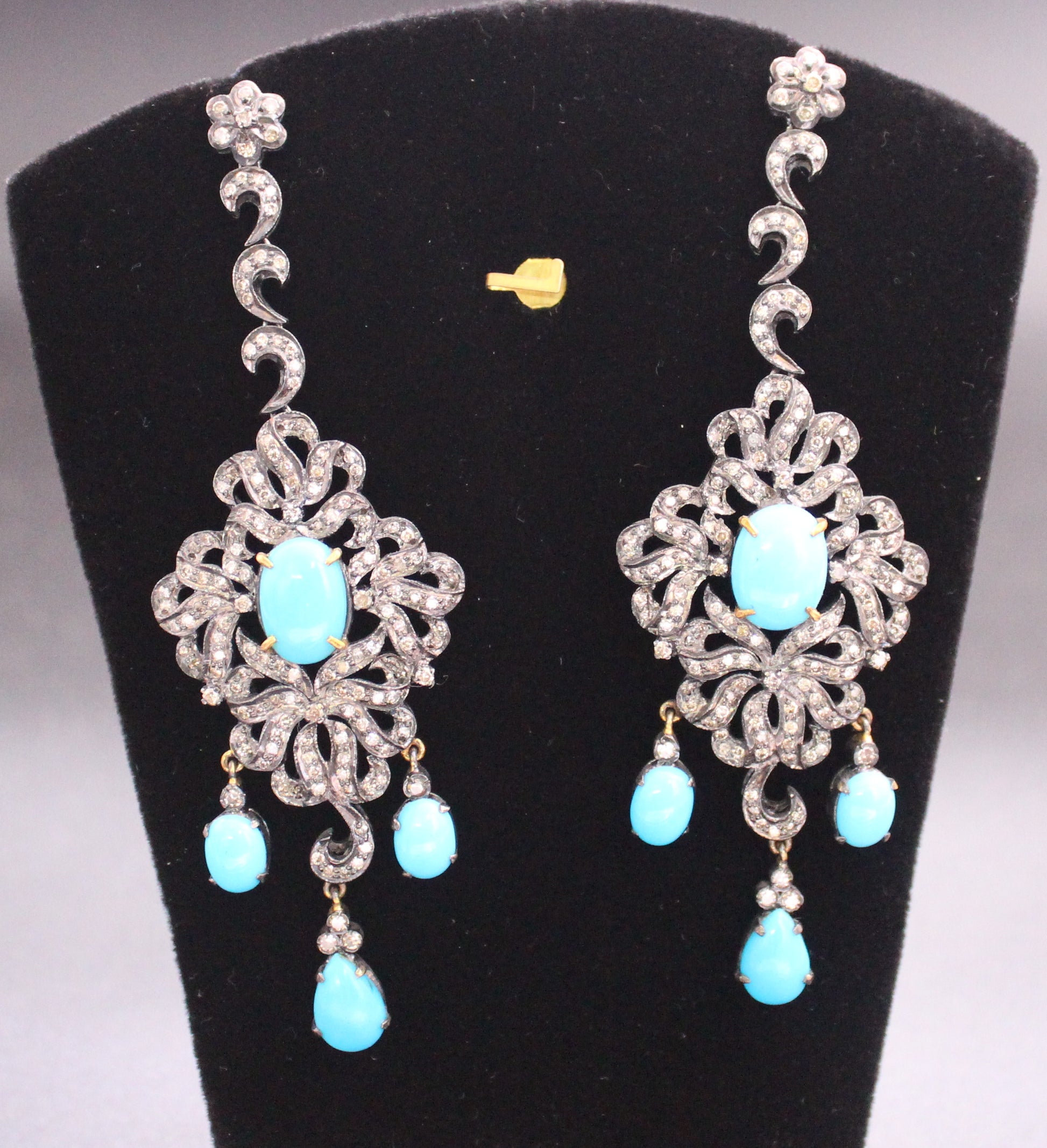 Gold & Silver Diamond and Turquoise Earring in Antique look set in Sterling Silver