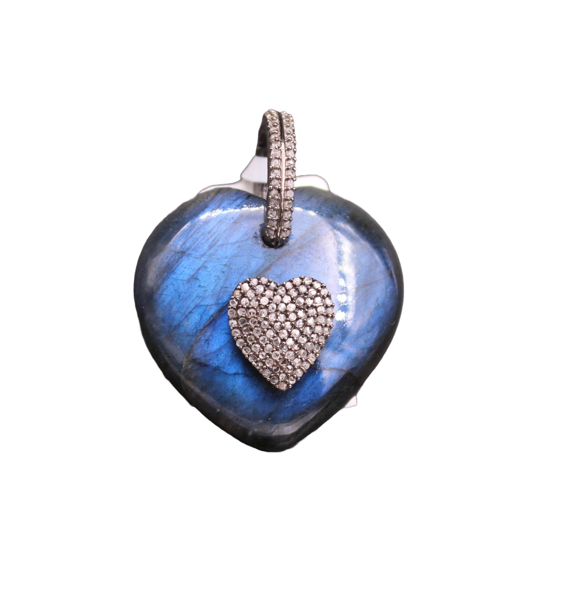 Heart Design Diamond and Gemstone Pendant in Gold Rodium and Antique look set in Sterling Silver