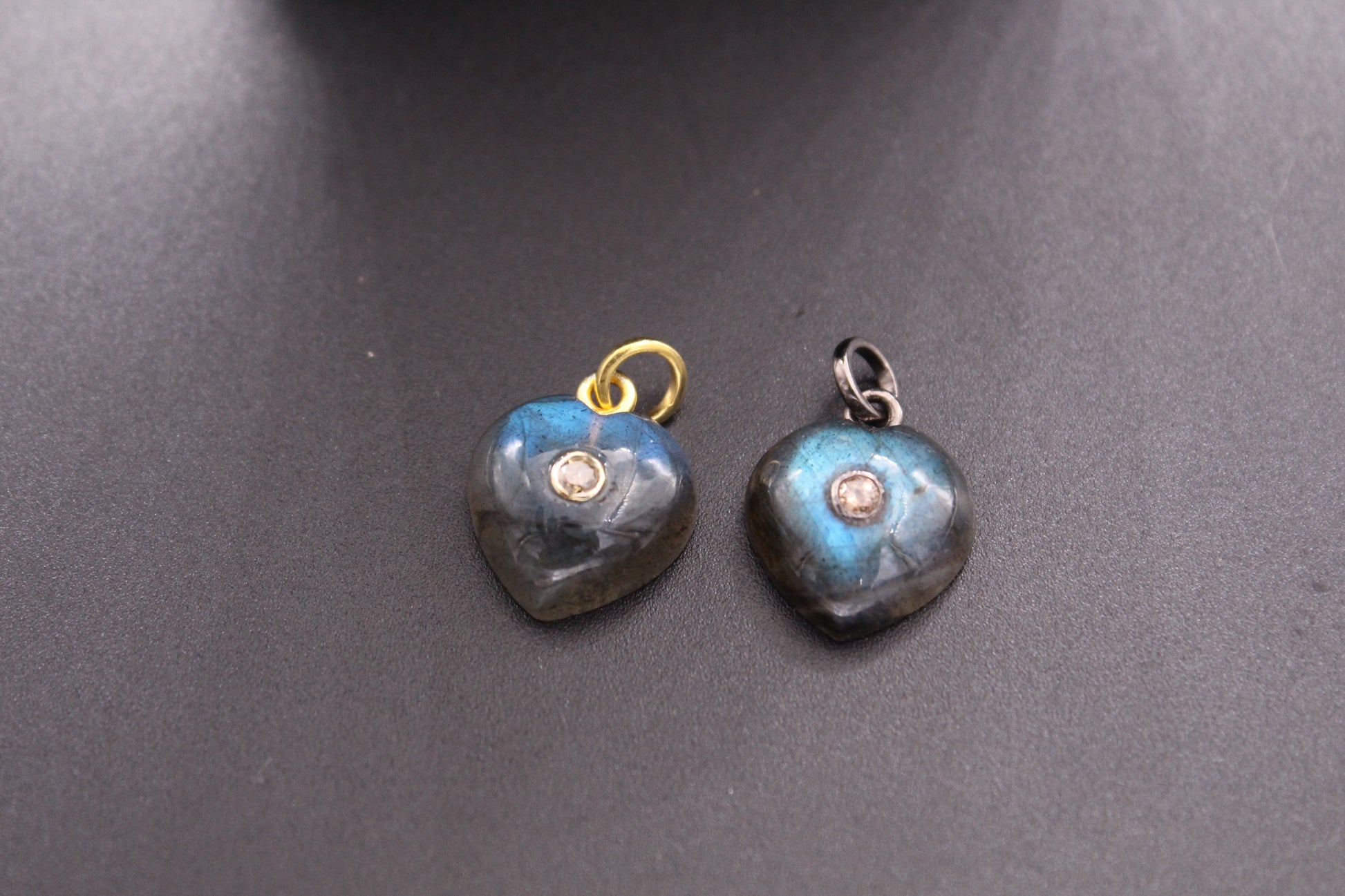 Heart Diamond & Labro or Moon Stone Pendant in Antique look set in Sterling Silver