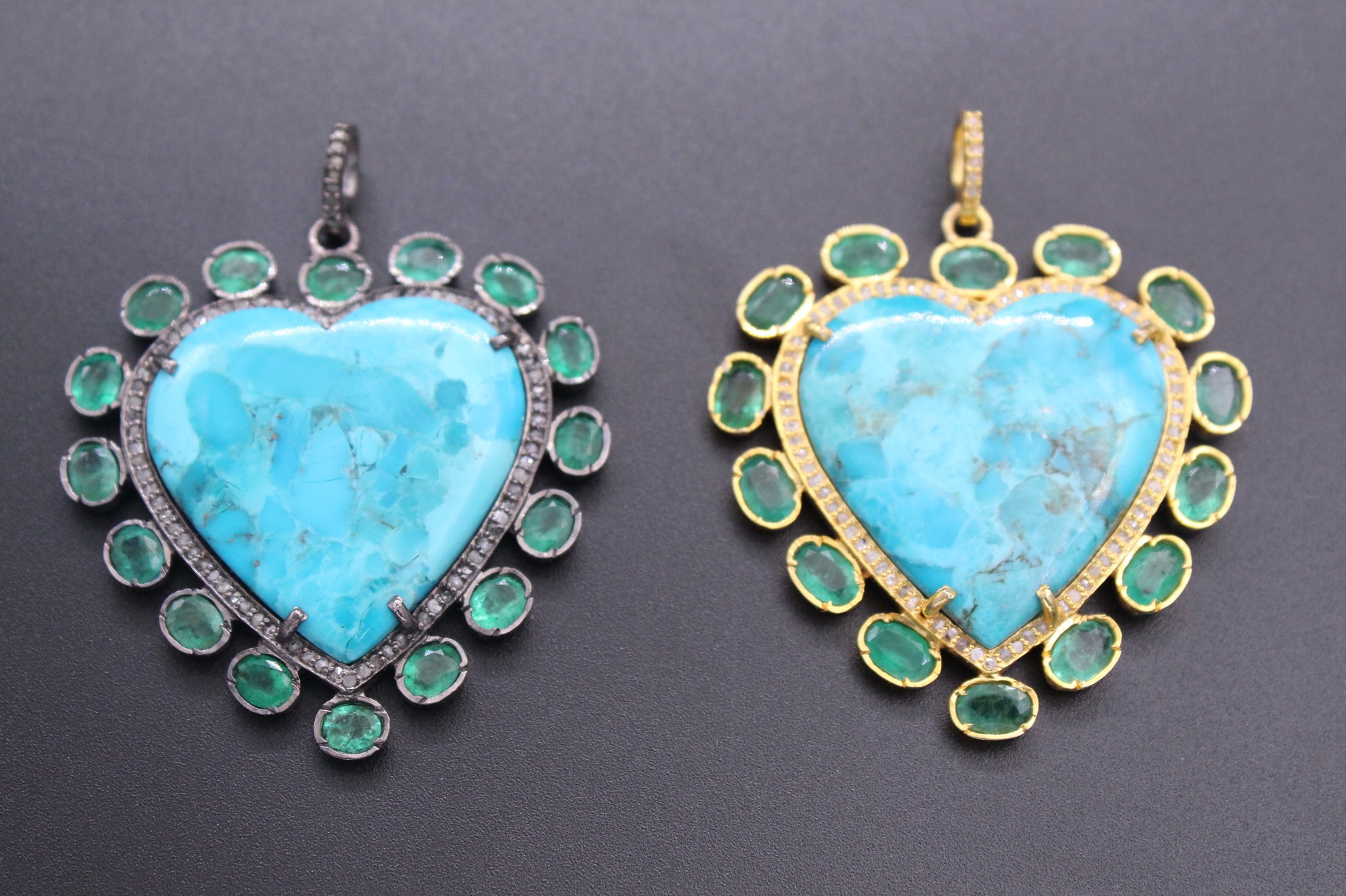 Heart Diamond & Turquiose with Moti Pendant in Antique & Gold Rodium look set in Sterling Silver
