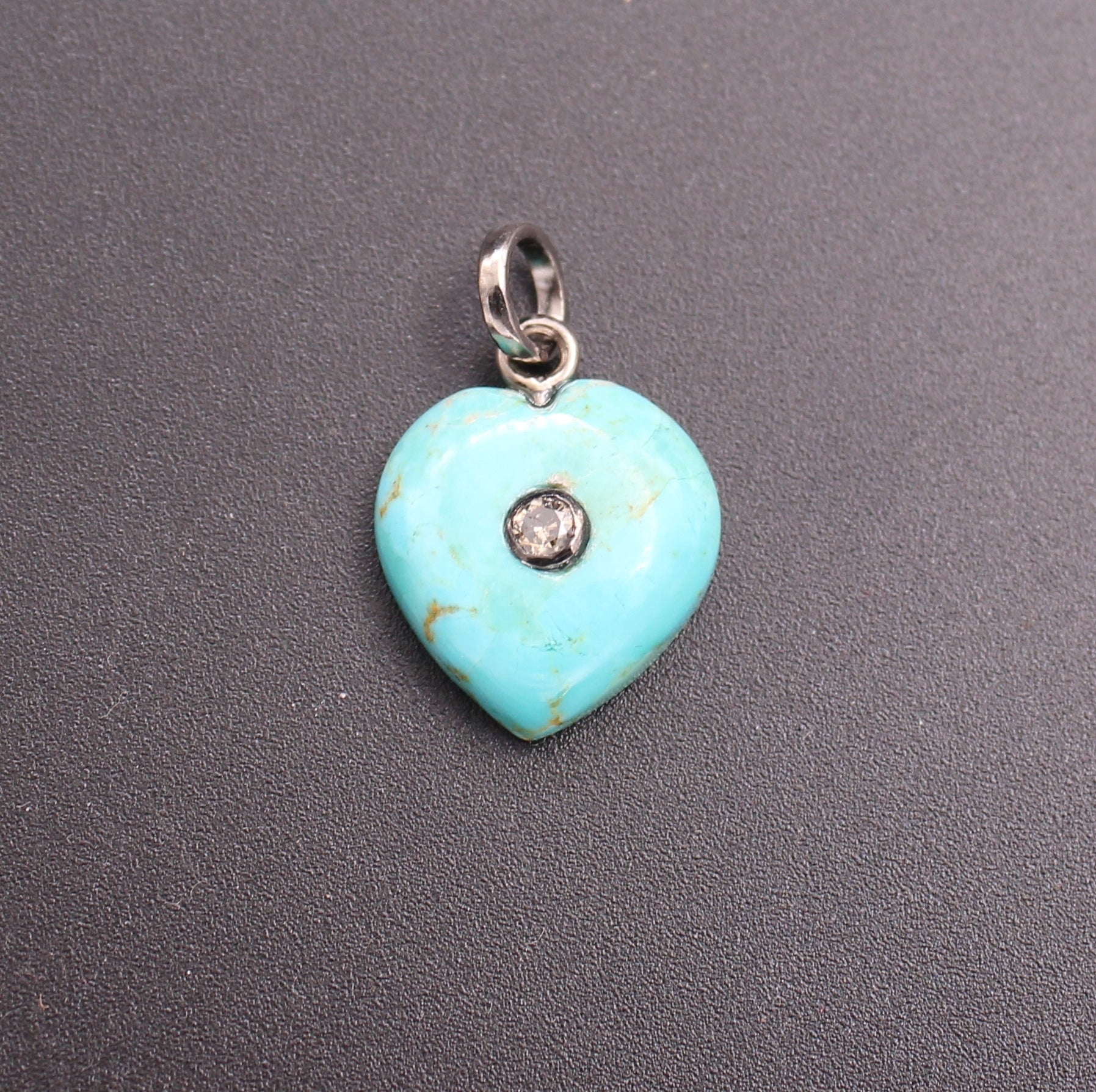 Heart Turquoise Diamond Pendant in Gold Rodium and Antique look set in Sterling Silver
