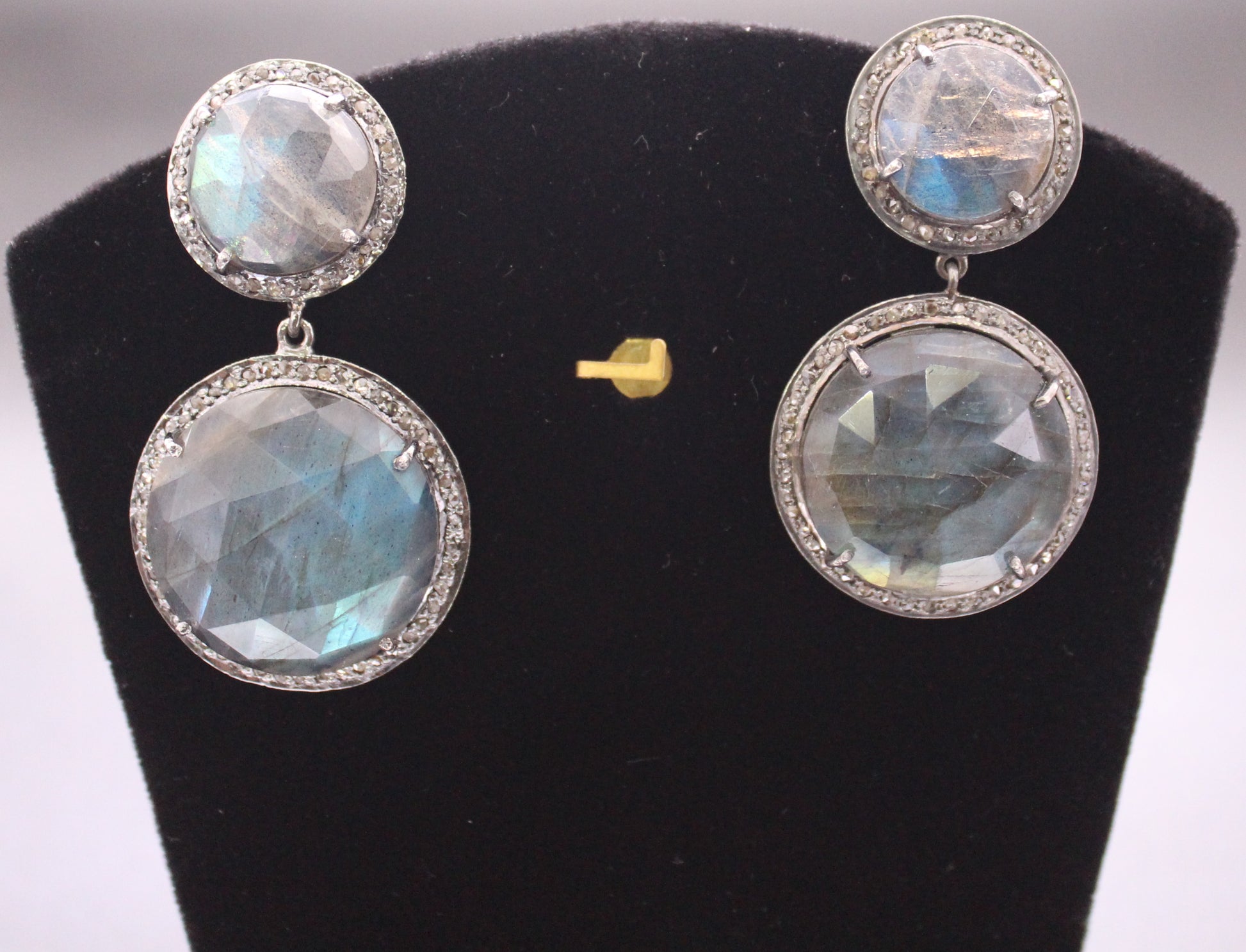 Labradorite Stone Silver Diamond Earring in Antique look set in Sterling Silver