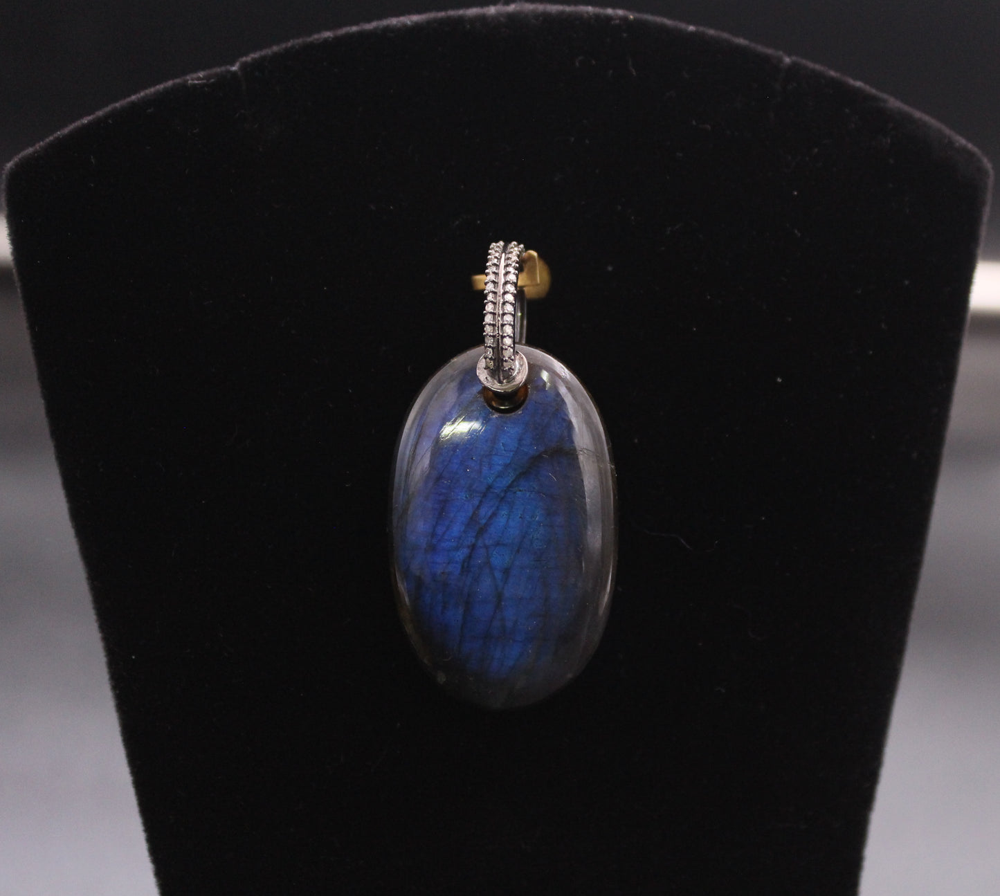 Oval Labro and Moon Stone Pendant in Antique look set in Sterling Silver.