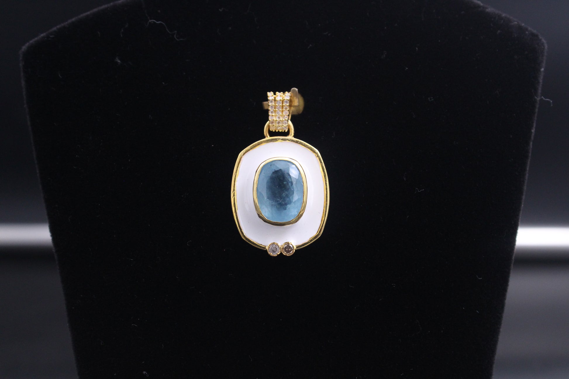 Rectangle Enamel with Stone Pendant in Gold Rodium set in Sterling Silver