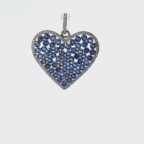 Sapphire Diamond Heart Pendant in Sterling Silver Handmade