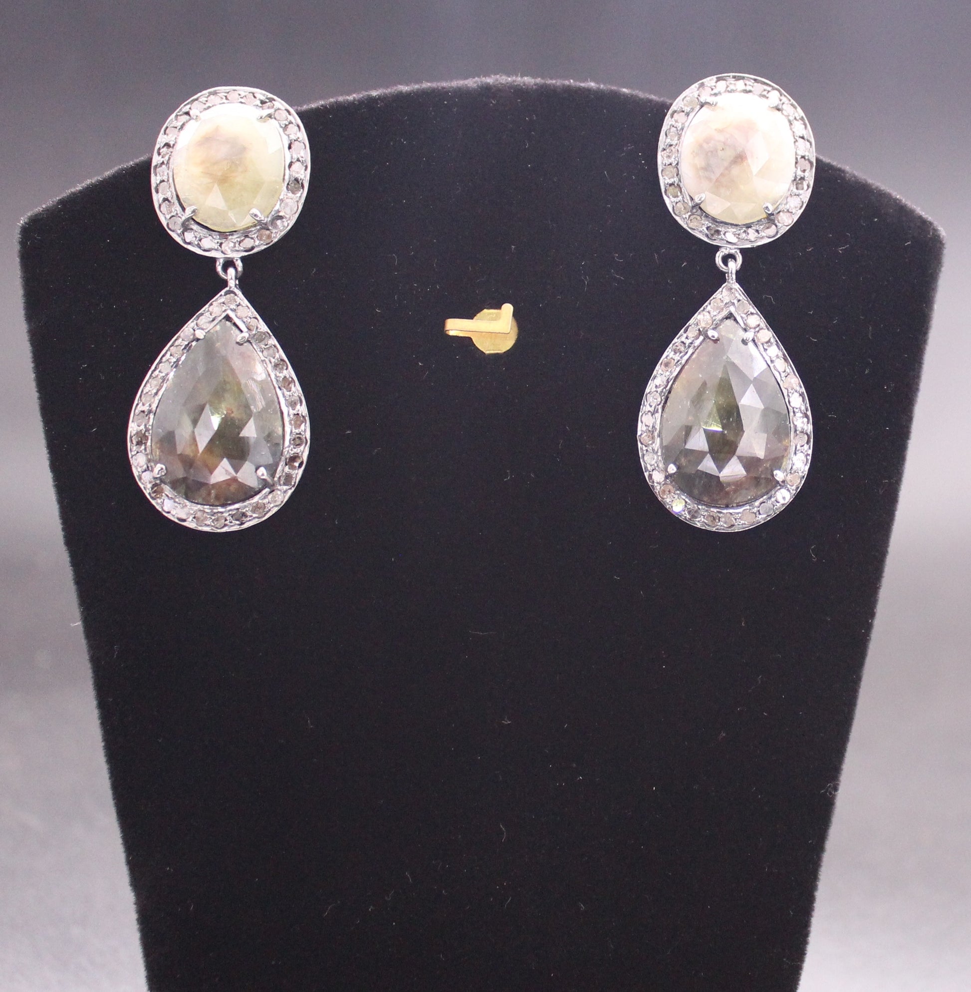 Silver Diamond and Gemstone Earring in Antique look set in Sterling Silver