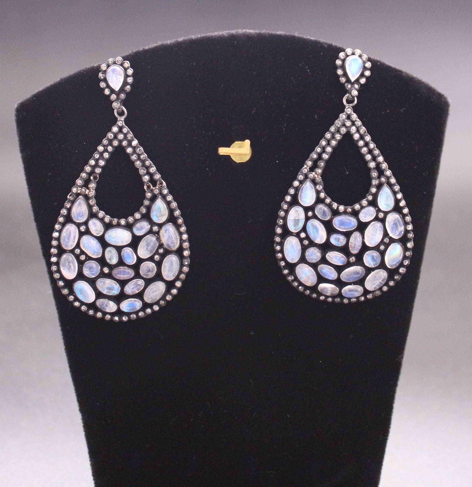Silver Diamond and Moon stone Earring in Antique look set in Sterling Silver