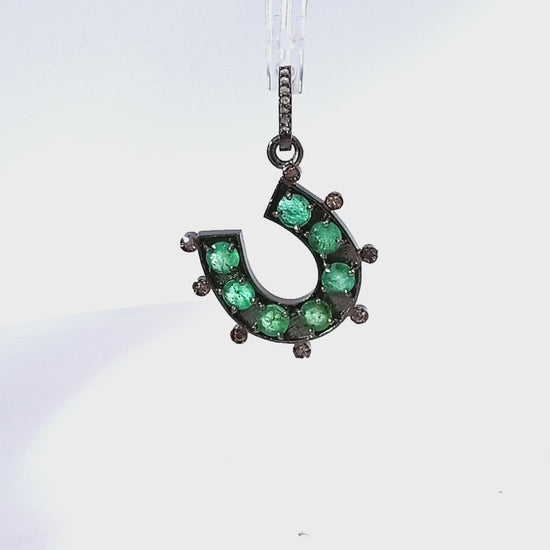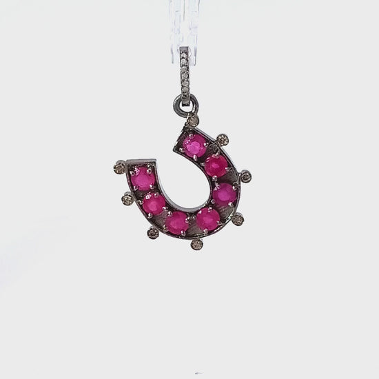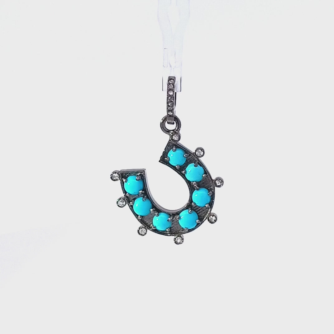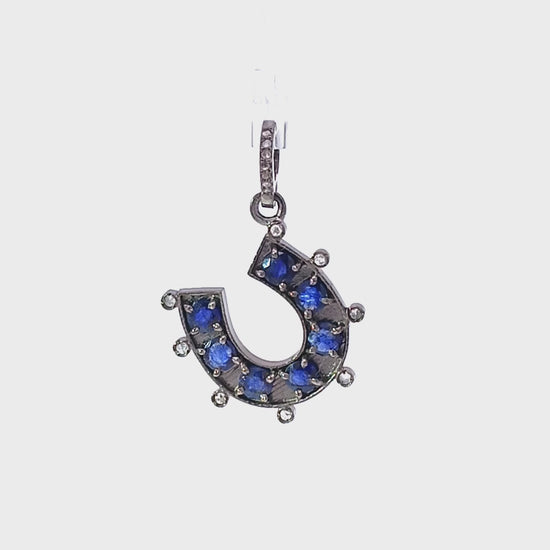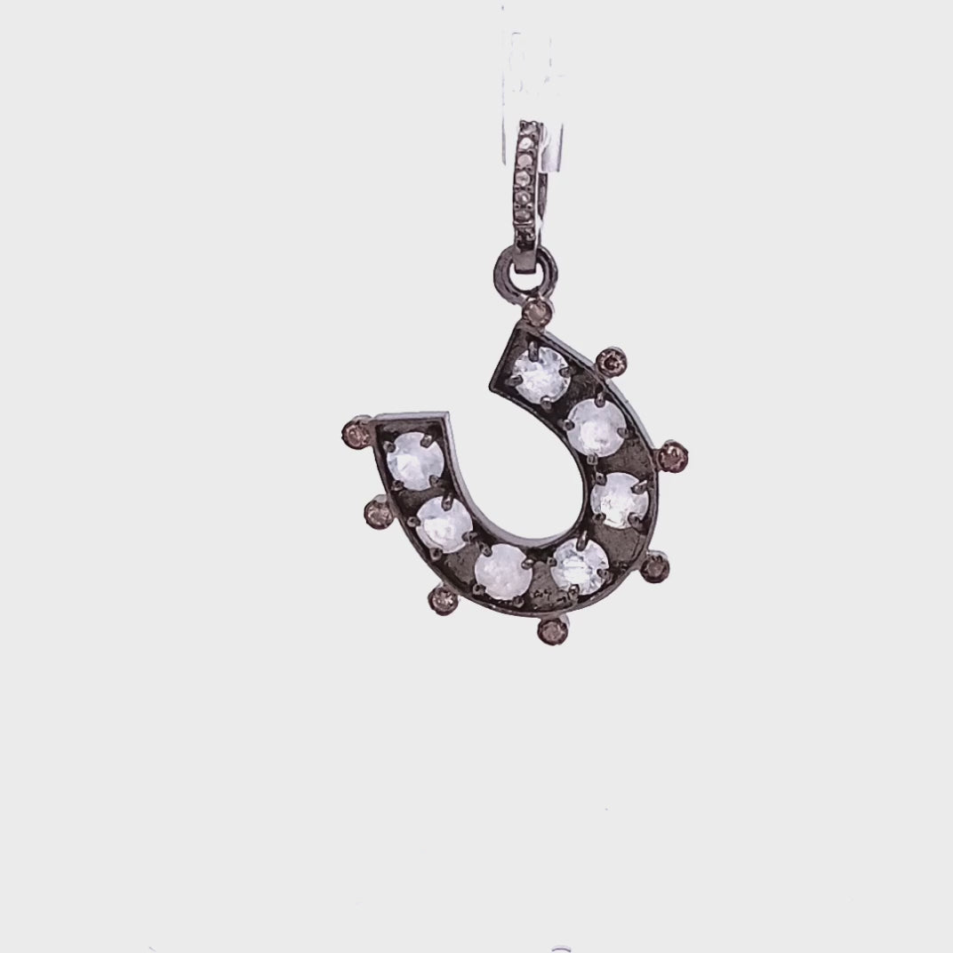 Small Horse Shoe Diamond & Stone Charm in Antique look set in Sterling Sliver Handmade