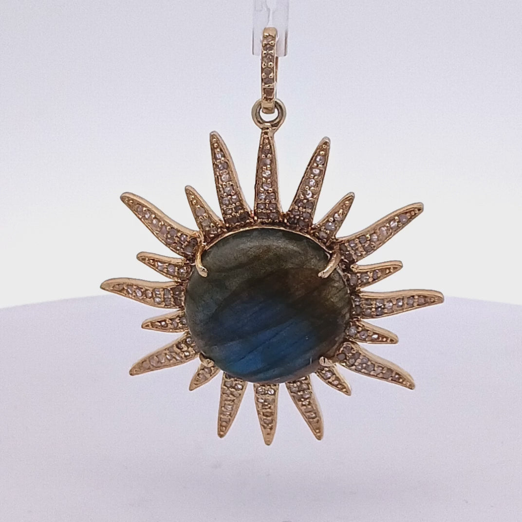 Sun Diamond and Labro Pendant in Antique look set in Sterling Silver