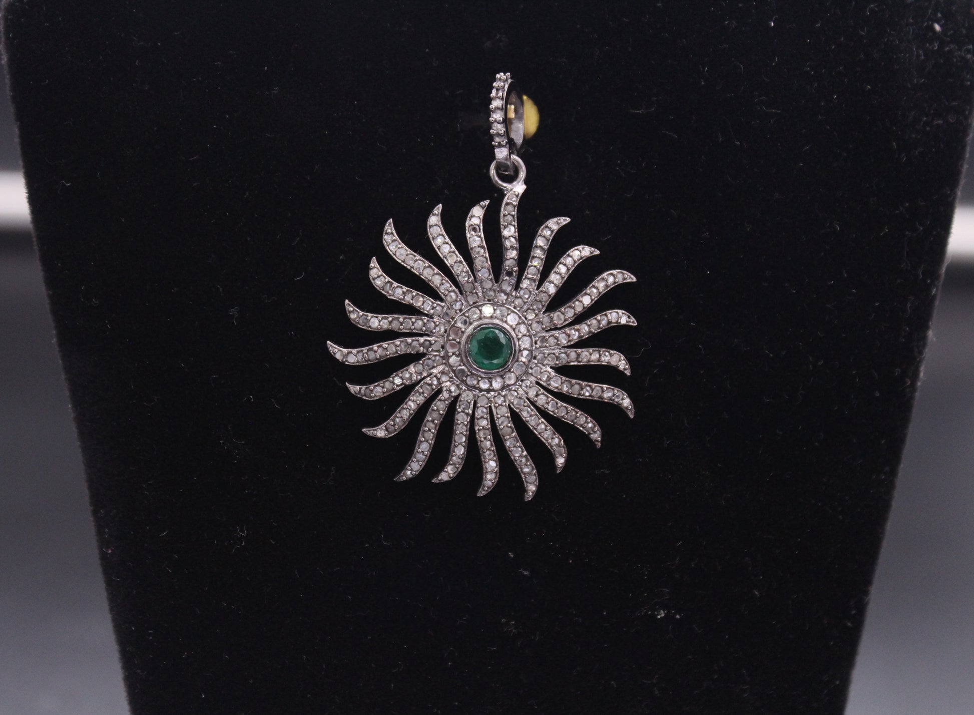 Sun Diamond With EM & Ruby & Opal & Moon Stone & Turquiose Pendant in look set in Sterling Silver