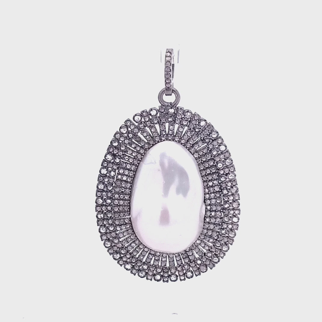 Tear Drop Pearl Diamond Pendant in Sterling Silver Handmade