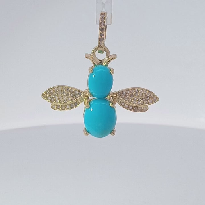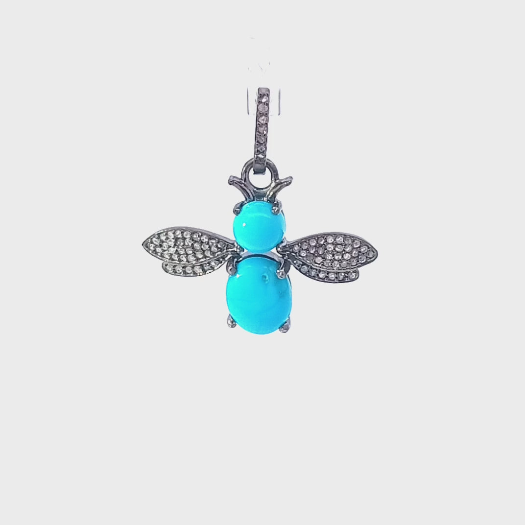 Turquoise and Diamond Bee Charm in Sterling Silver Handmade