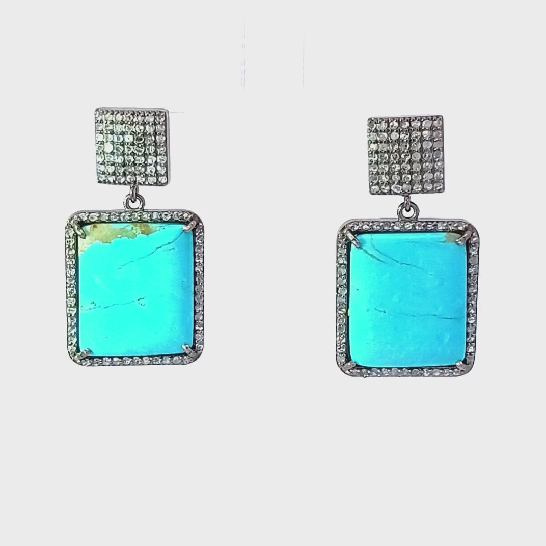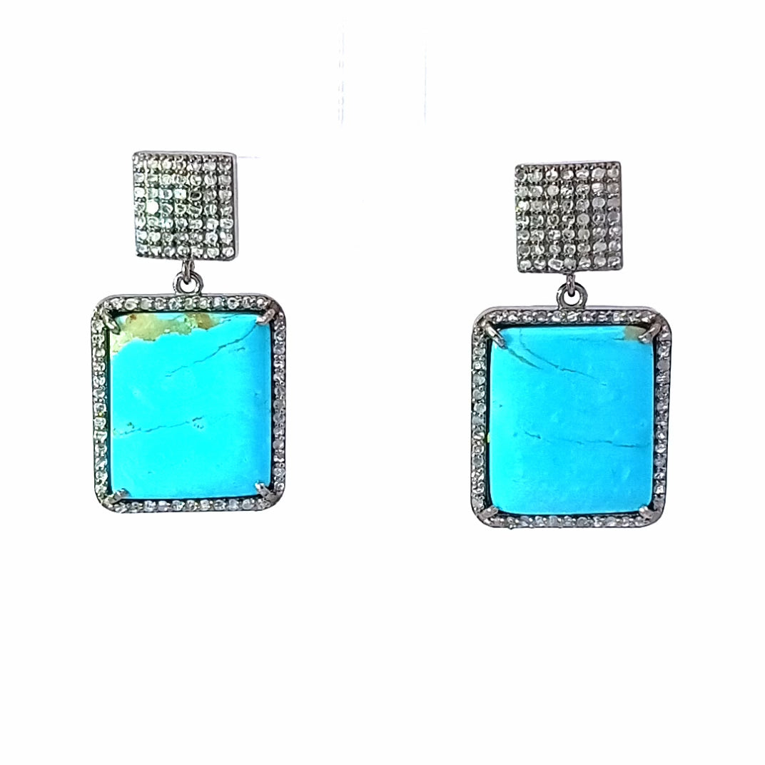 Turquoise and Diamond Earring in Sterling Silver Handmade