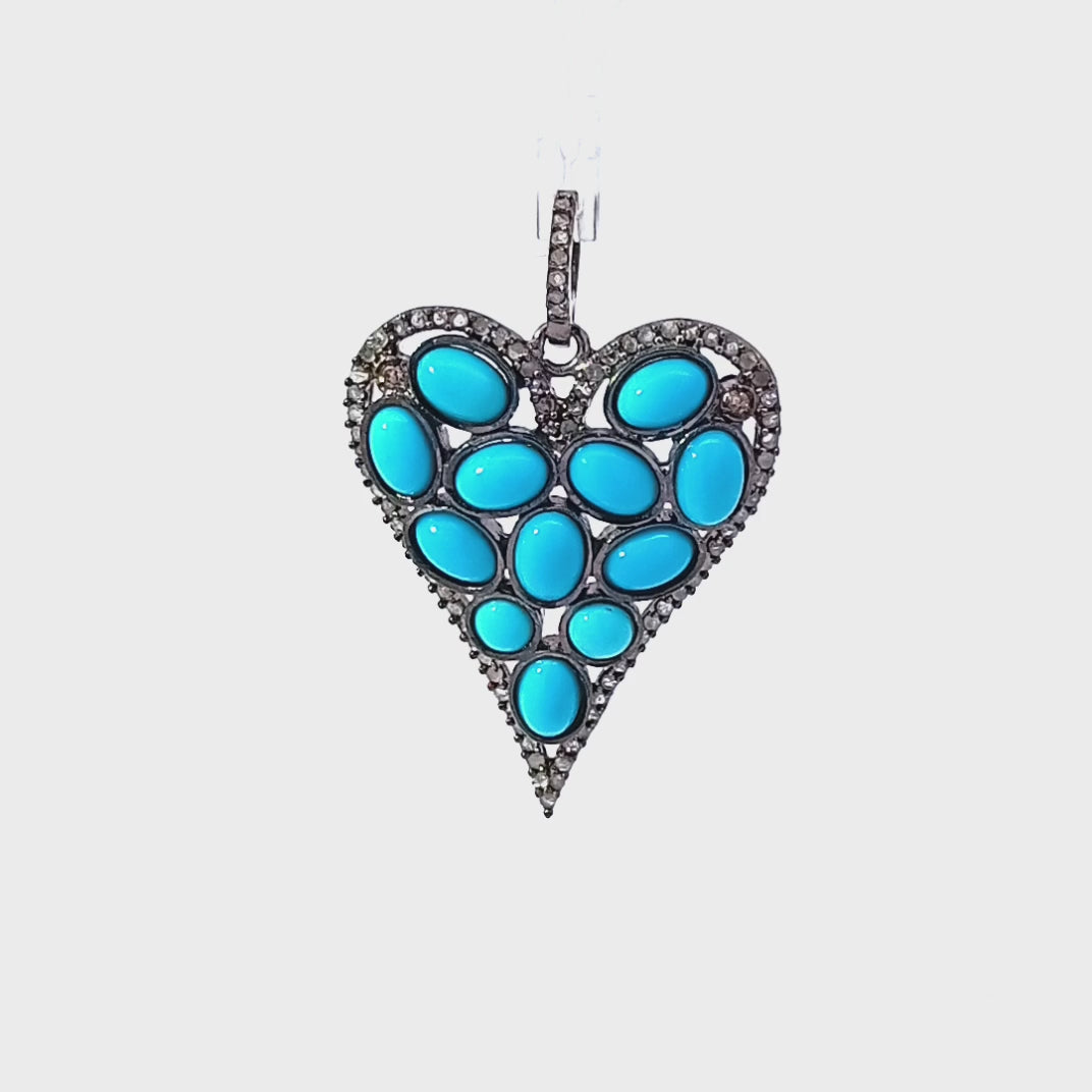 Turquoise Diamond Heart Pendant in Sterling Silver Handmade