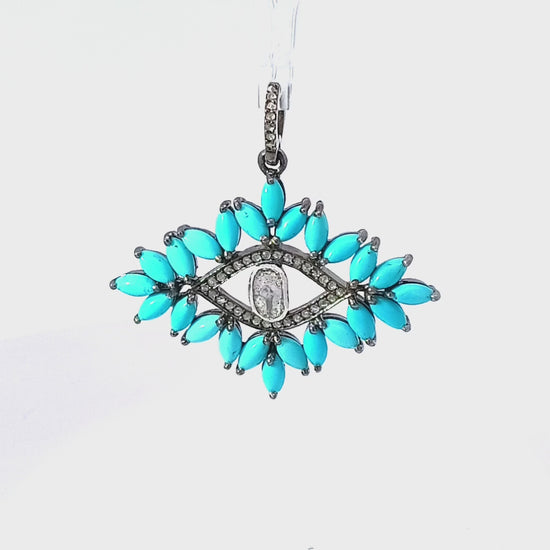 Diamond and Turquoise / Blue Sapphire Evil Eye Charm with Polki in Sterling Silver Handmade